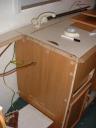 a pic of the kitchen unit, where the cooker once sat - here you can see some damage to the worktop, which will hopefully glue back together, and with a new laminate top applied it should be as good an new. The other issue i have with the worktop is the recessed sink and cover, which will be very handy as additional workspace, however the cut out exposes the "end-grain" of the worktop to the water from the sink, and as such the worktop is swollen slightly around the sink - i think i'll re-make the whole top with marine ply, and apply lots of sealant to any exposed end-grain.